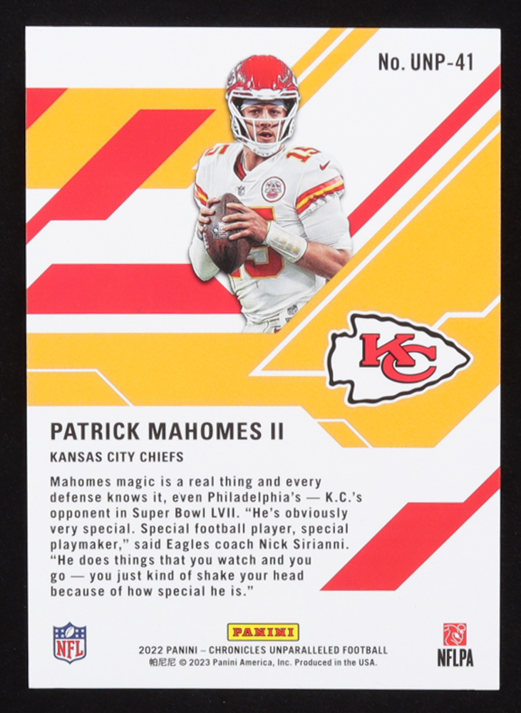 Patrick Mahomes 2022 Panini Chronicles Unparalleled Checker #UNP41 #107/399