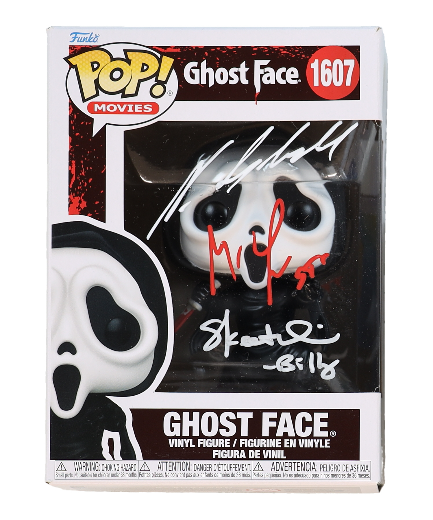 Neve Campbell, Matthew Lillard & Skeet Ulrich Signed "Ghost Face" #1607 Ghost Face Funko Pop! Vinyl Figure Inscribed "Billy" & "Stu" (Beckett)