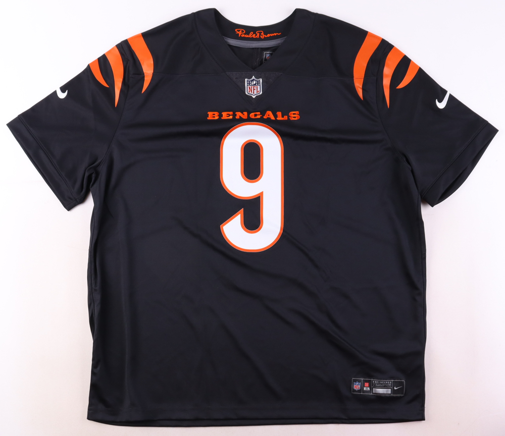 Nike jersey. Everything is printed on, size XL. Hand-signed by Joe Burrow (Cincinnati Bengals).