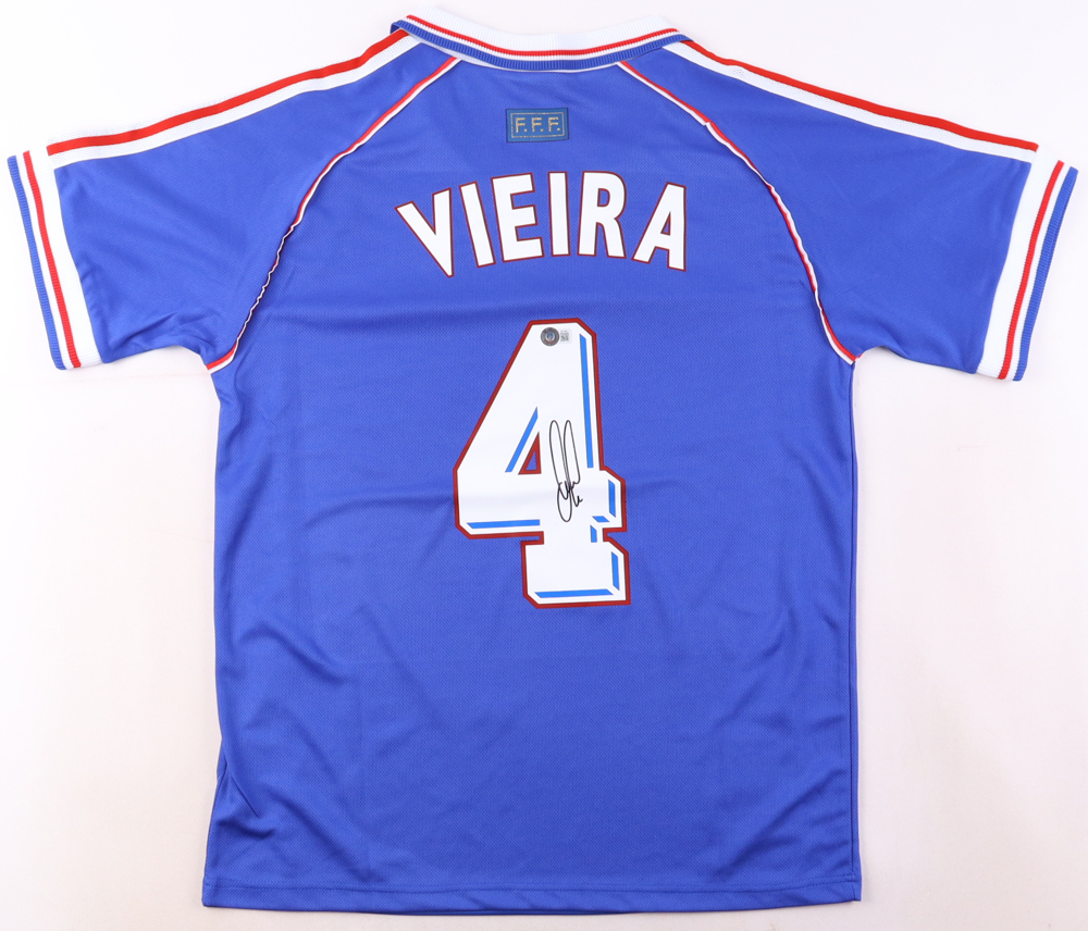 Adidas style jersey with everything pressed on, size L. Hand-signed by Patrick Vieira.