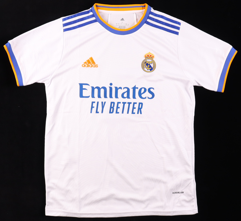 Adidas style jersey with everything pressed on, size L. Hand-signed by Karim Benzema.