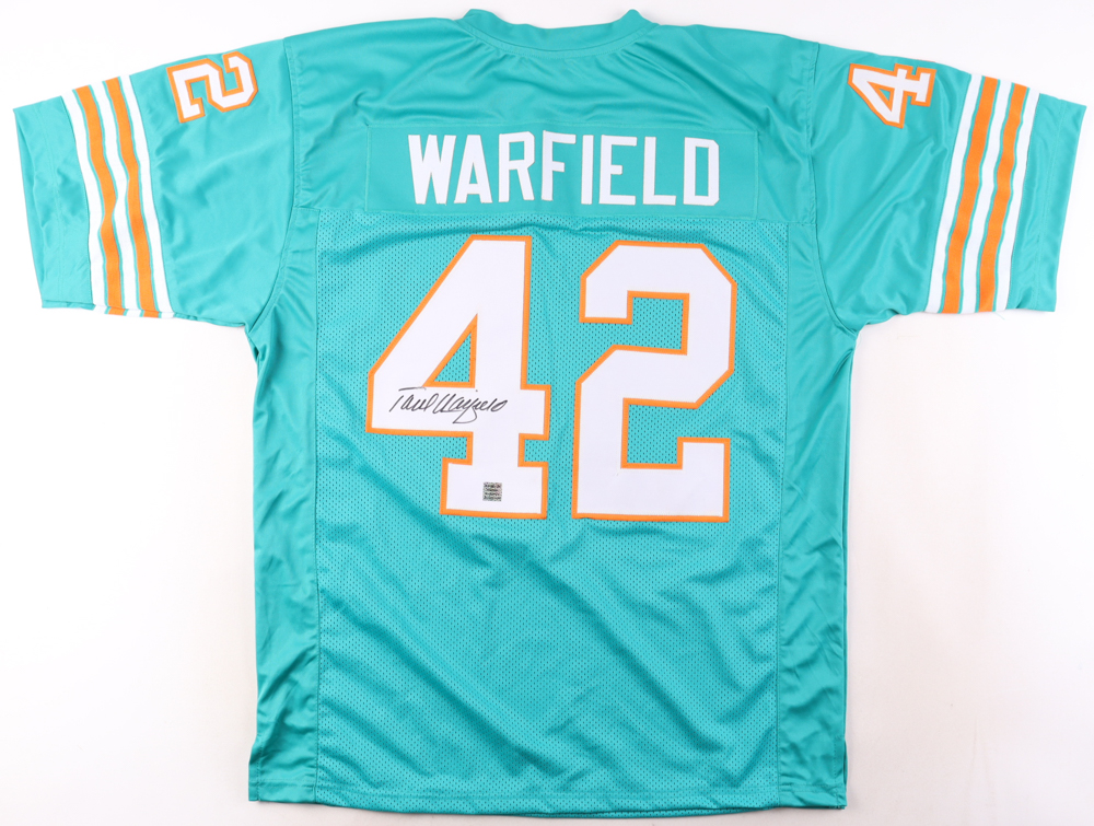 Custom jersey with everything sewn on, size XL. Hand-signed by Paul Warfield (HOF).