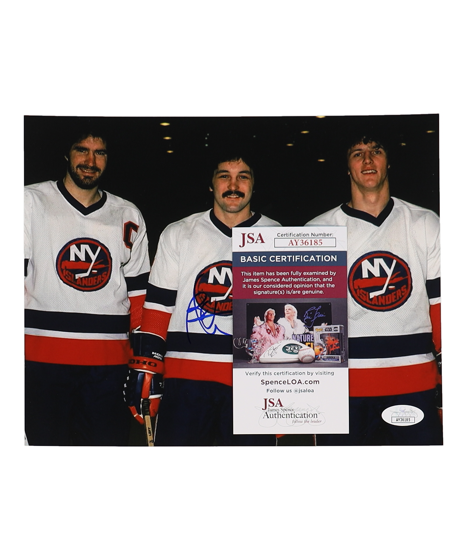 Photo measures 8" x 10" in size and has been hand-signed by Bryan Trottier (New York Islanders, HOF).