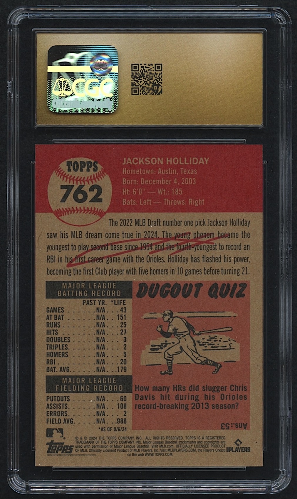 Jackson Holliday 2024 Topps Living Set #762 RC (CGC 10 | Black Label)