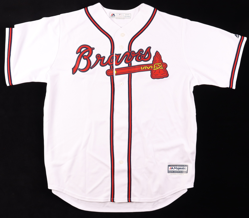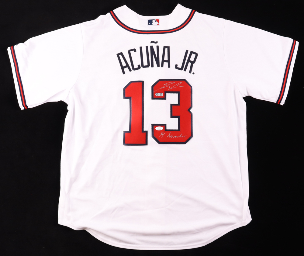 Majestic jersey. Everything is pressed on, size XL. Hand-signed and inscribed by Ronald Acuna Jr. (Atlanta Braves).
