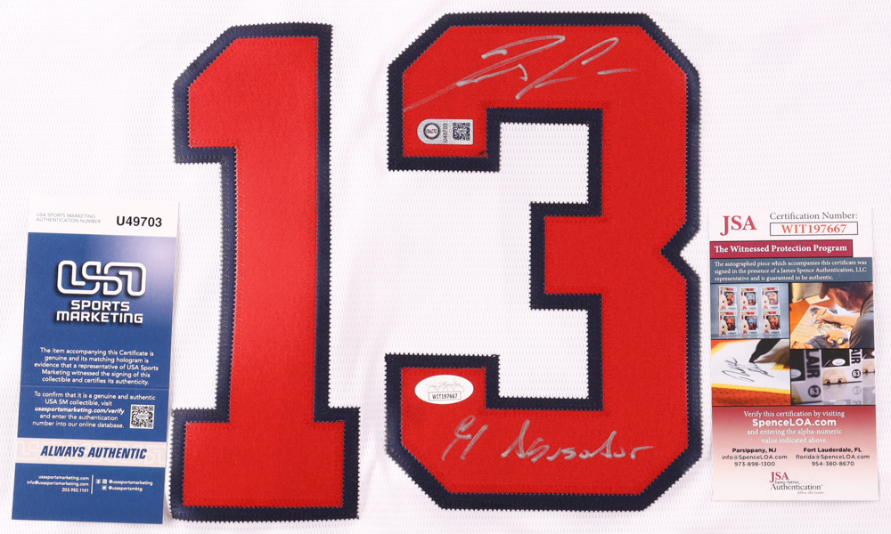 The autograph(s) includes an official James Spence Authentication (JSA) hologram and matching COA as well as a USA Sports Marketing hologram and COA for authenticity purposes. The signing of this item was witnessed by JSA.