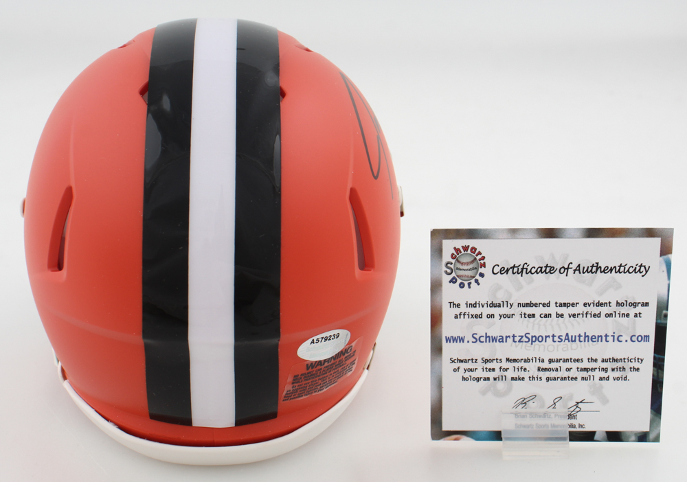 Riddell Cleveland Browns Speed mini helmet. Hand-signed by Joe Thomas (HOF).