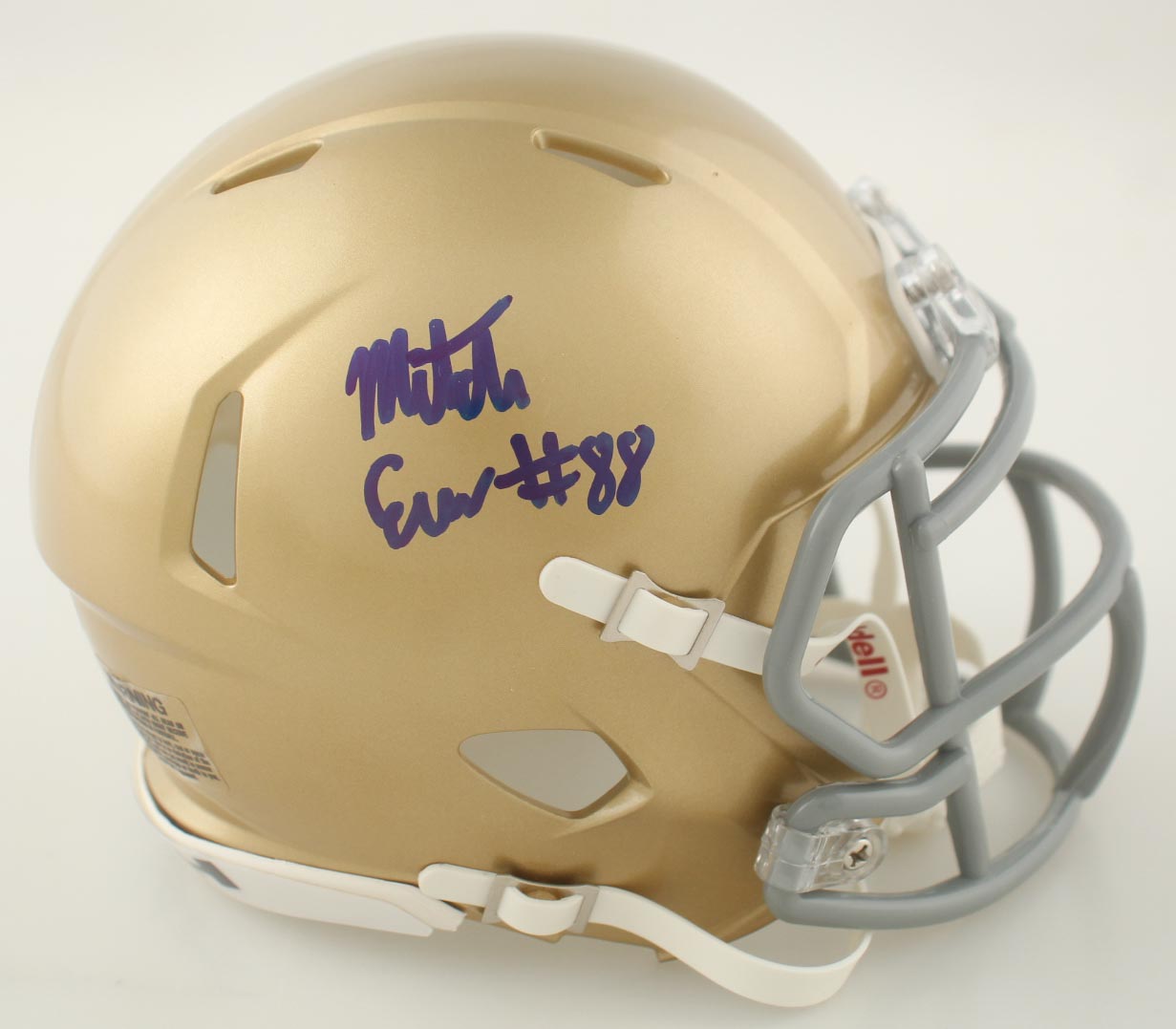 Riddell Notre Dame Fighting Irish speed mini helmet. Hand-signed by Mitchell Evans.