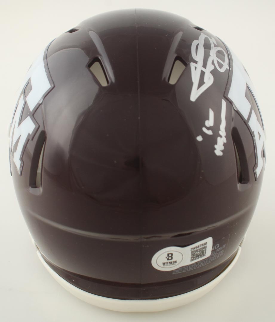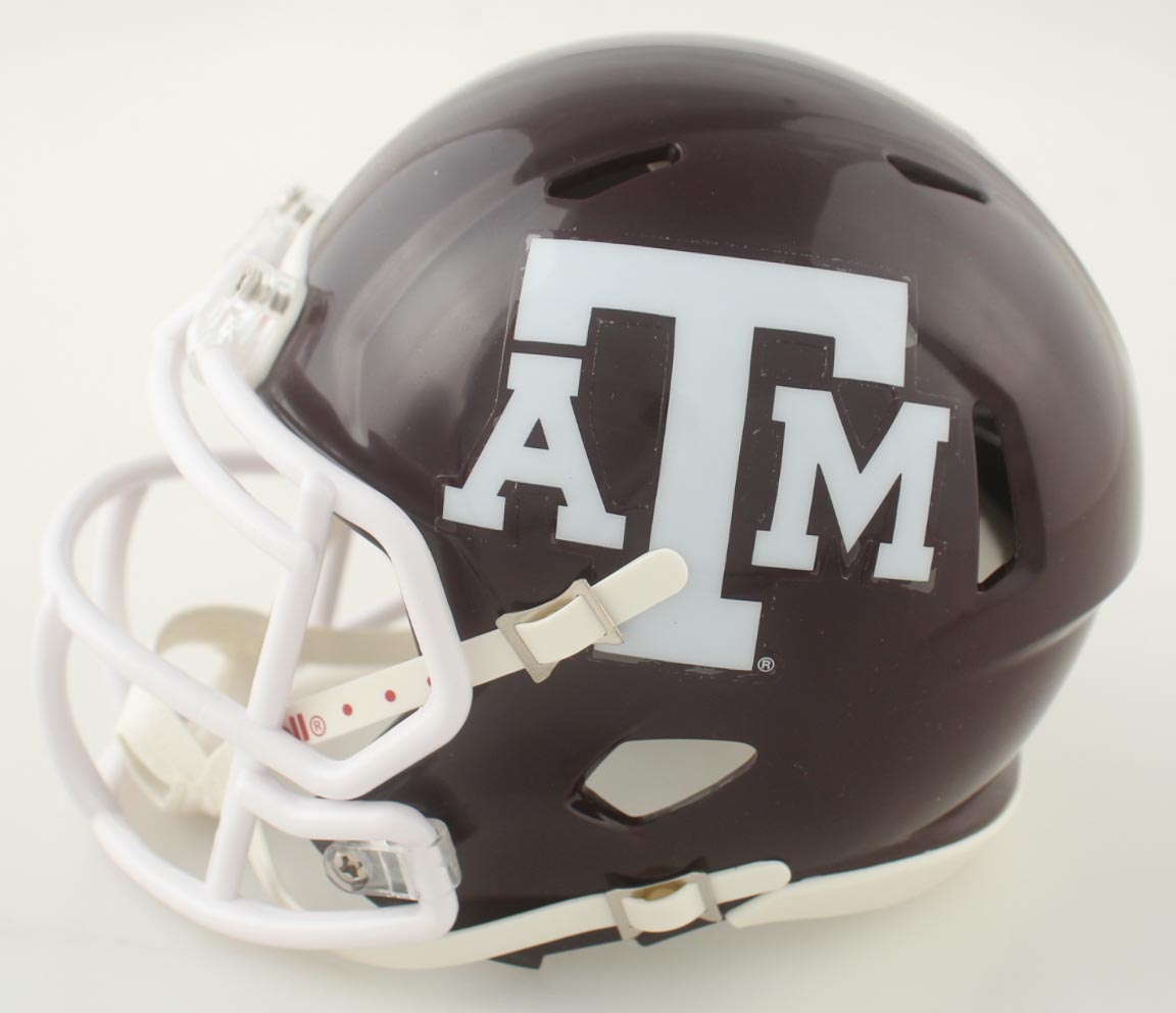 Riddell Texas A&M Aggies speed mini helmet. Hand-signed and inscribed by Johny Manziel.
