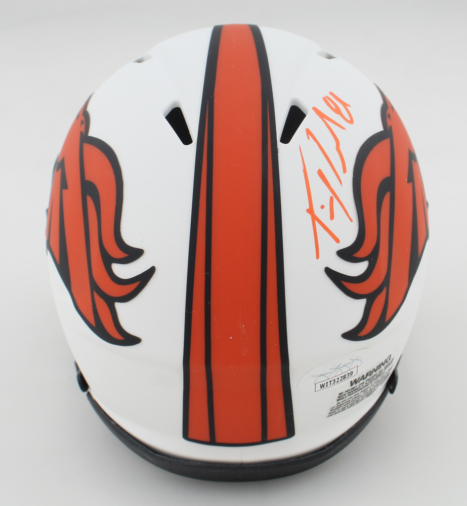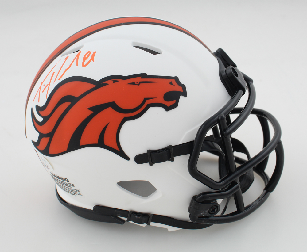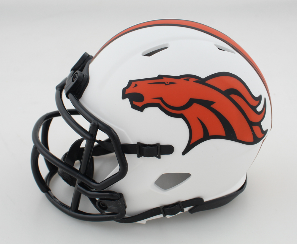 Riddell Denver Broncos lunar eclipse alternate speed mini helmet. Hand-signed by Tim Patrick.