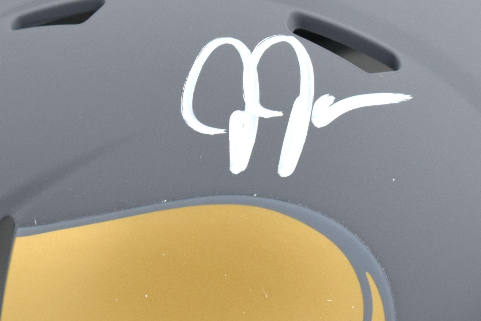 Riddell Minnesota Vikings Slate Alternate Speed mini helmet. Hand-signed by Justin Jefferson.