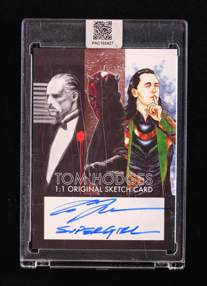 This original sketch card includes original art by renowned comic book artist, Tom Hodges. Also includes a character name inscription on the back by the artist.