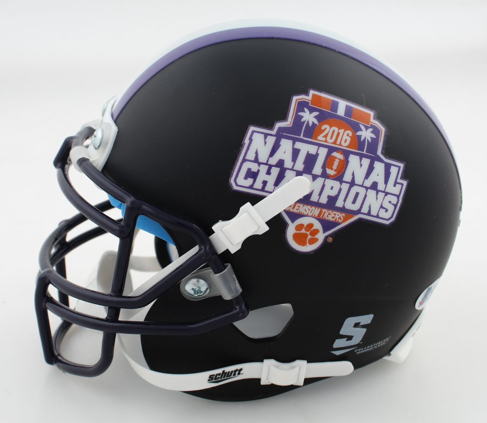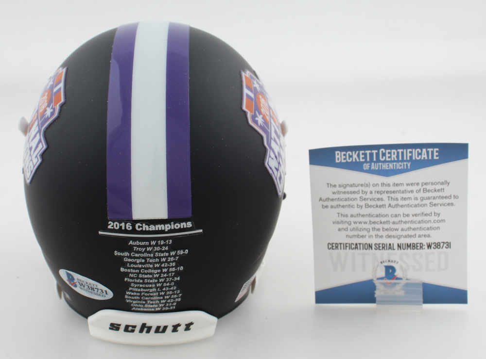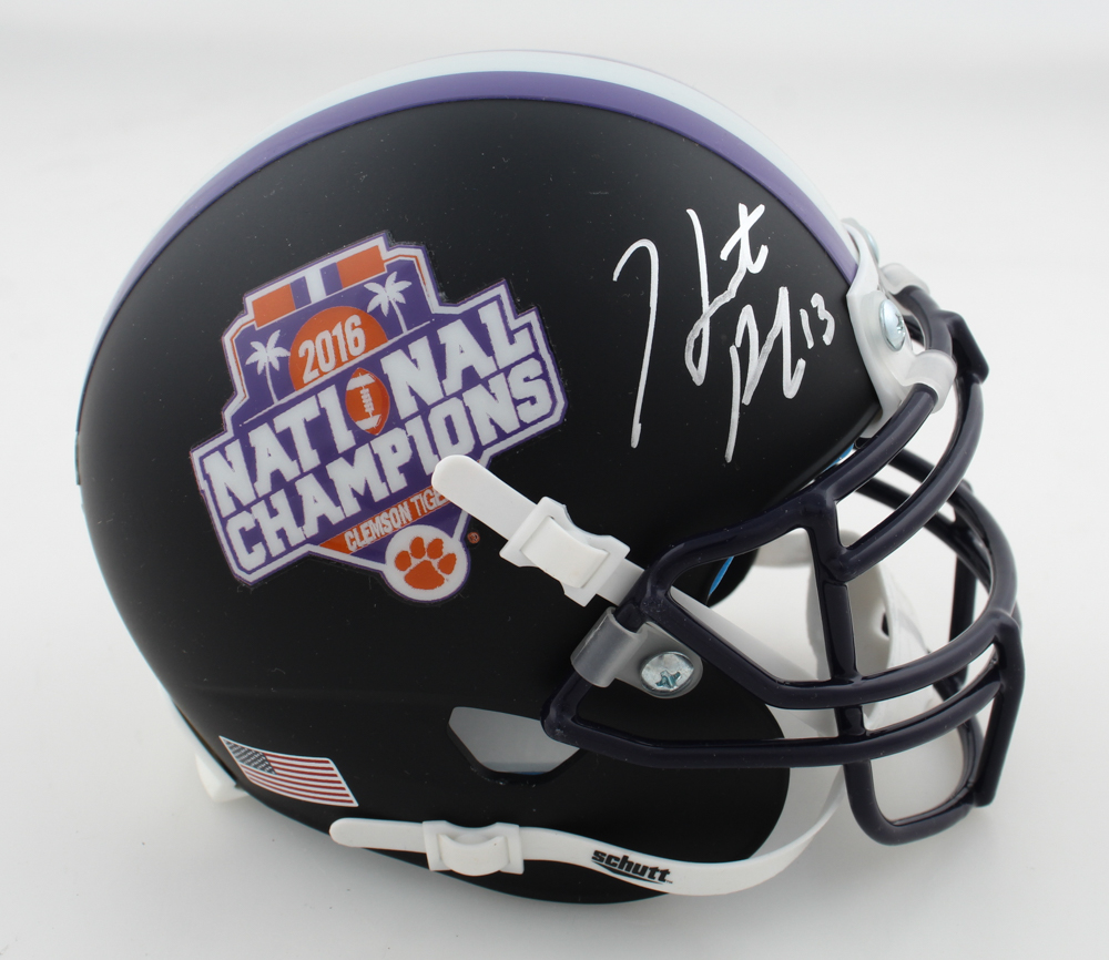 Schutt Clemson Tigers chrome mini helmet has been hand-signed and inscribed by Hunter Renfrow.