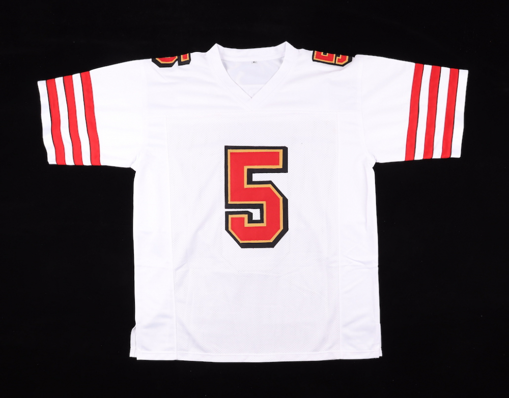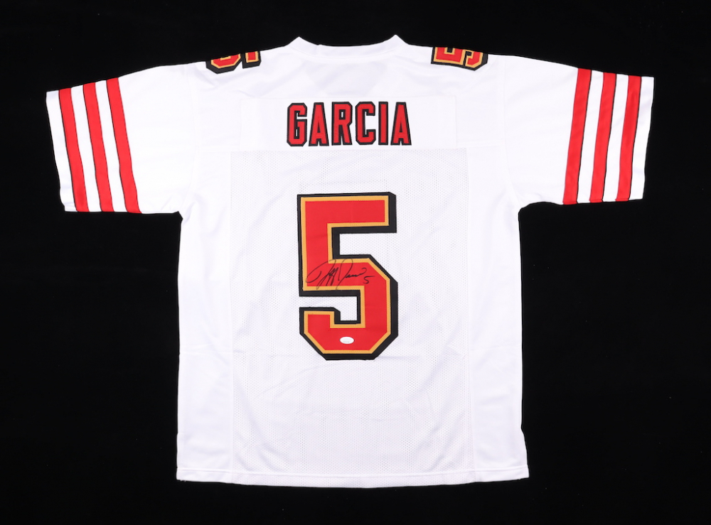 Custom jersey with everything sewn on, size XL. Hand-signed by Jeff Garcia.