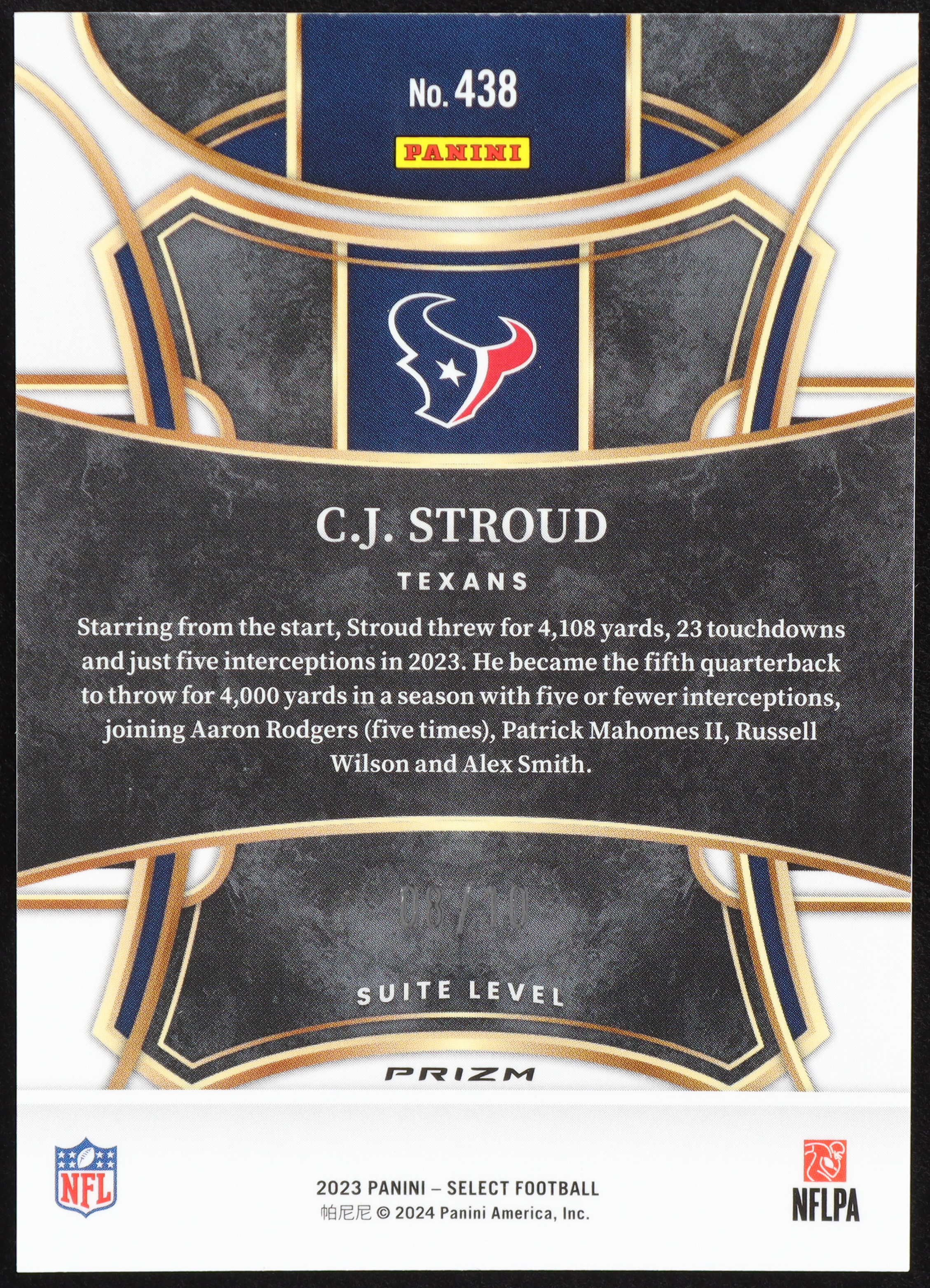 CJ Stroud 2023 Select Suite Level Gold Disco #438 RC #8/10