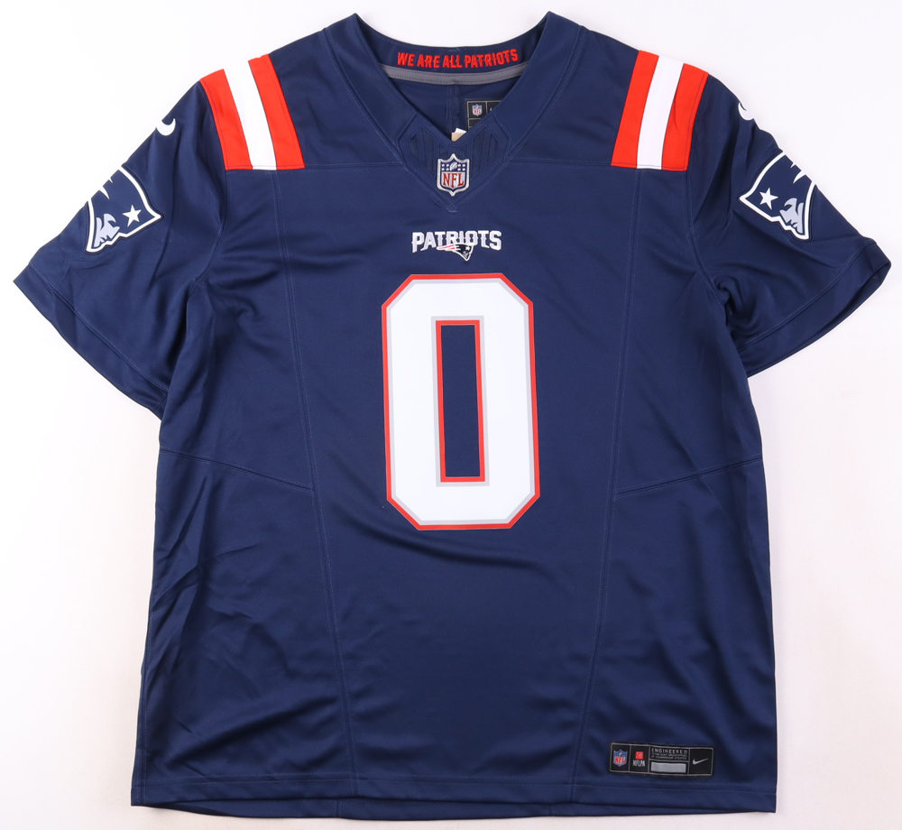 Nike jersey. Everything is pressed on, size XL. Hand-signed by Christian Gonzalez (New England Patriots).