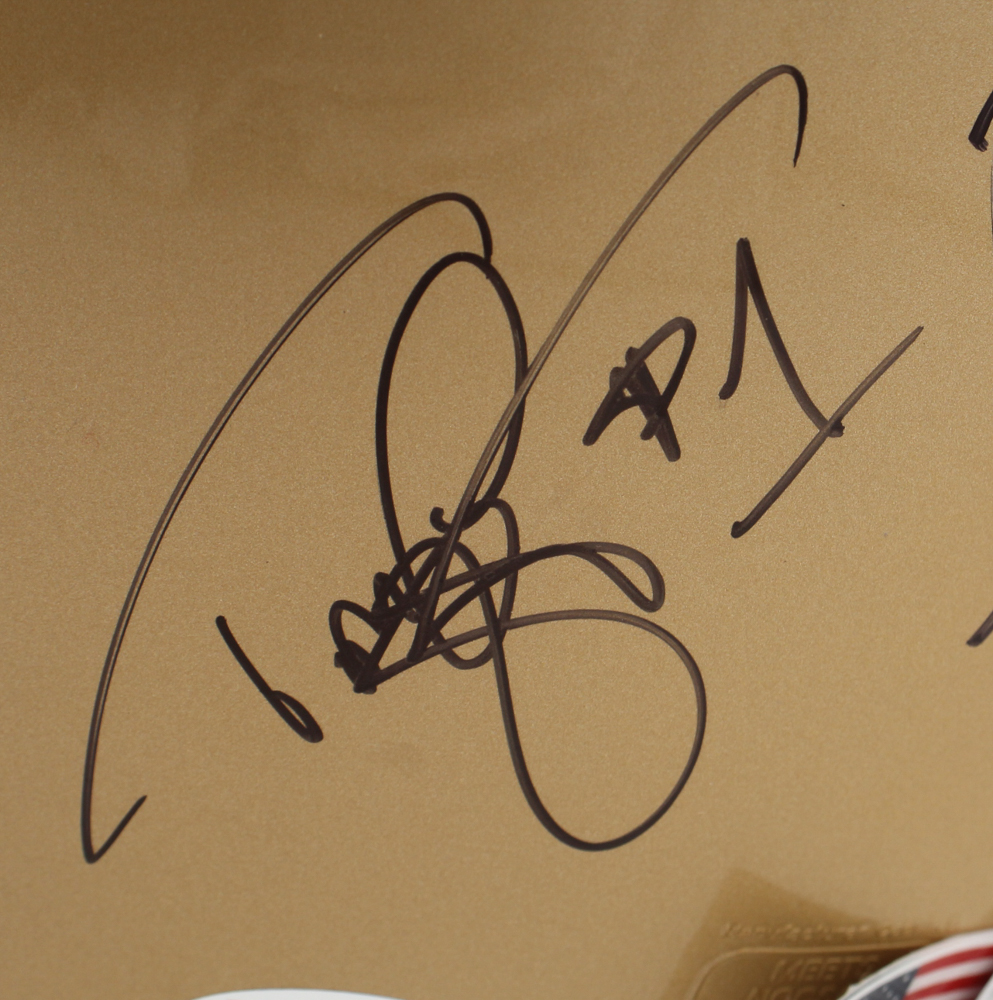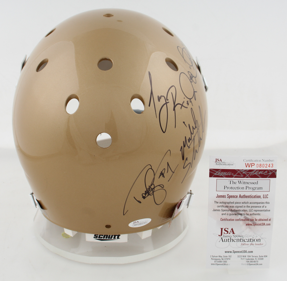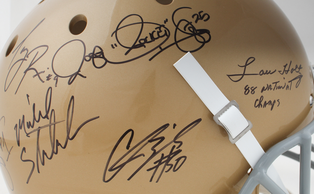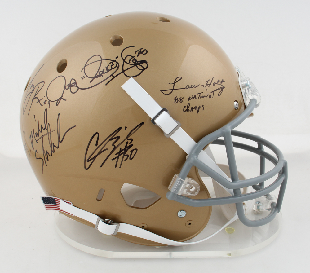 Notre Dame FIghting Irish Full-Size Helmet Signed By (6) With Tony Rice, Lou Holtz, Michael Stonebraker, Rocket Ismail with Inscriptions (JSA)