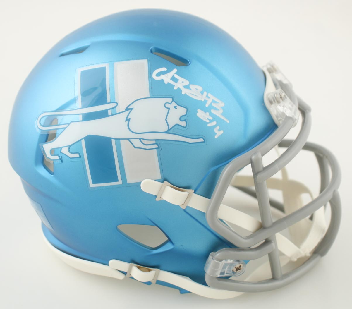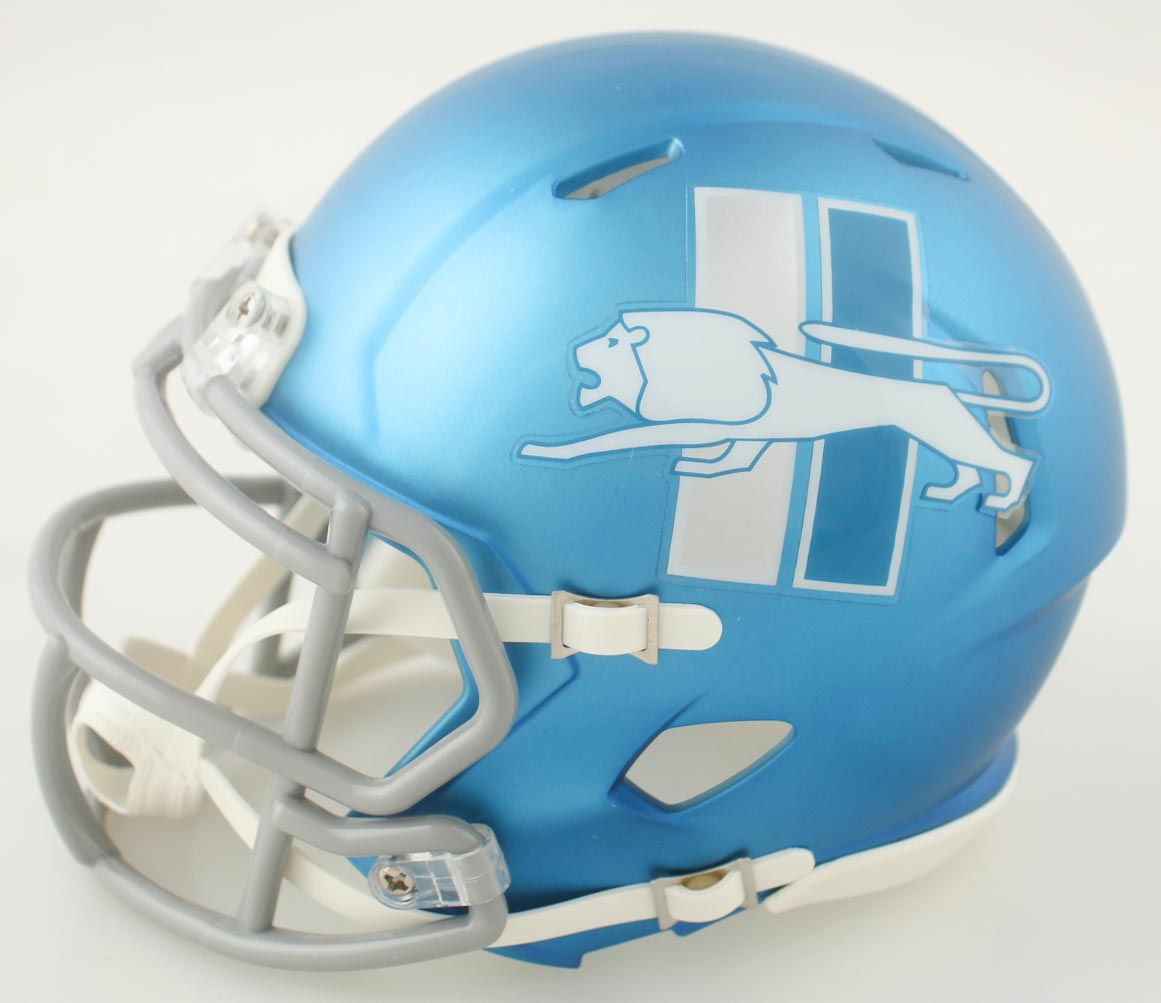 Riddell Detroit Lions Flash Alternate Speed mini helmet. Hand-signed and Amon-Ra St. Brown.