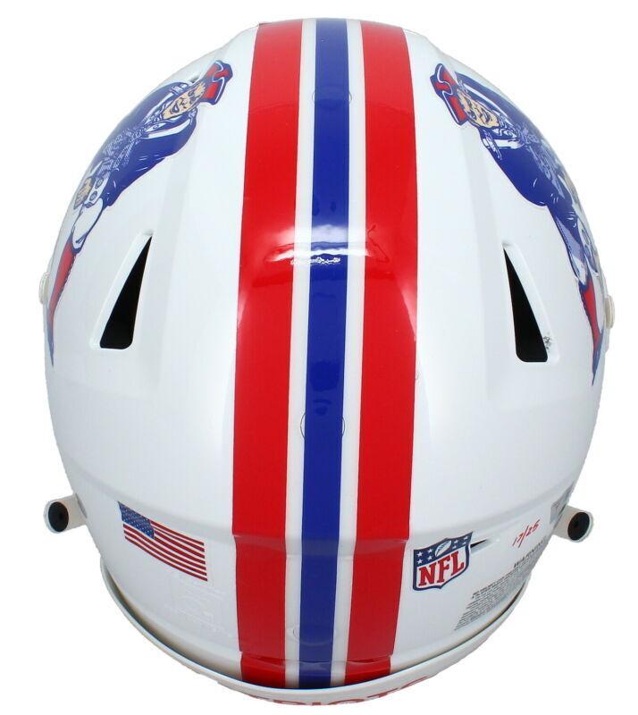 Riddell New England Patriots full-size authentic on-field throwback alternate speedflex helmet. Hand-signed and inscribed by Tom Brady. This item is limited edition and has been numbered #17/25.