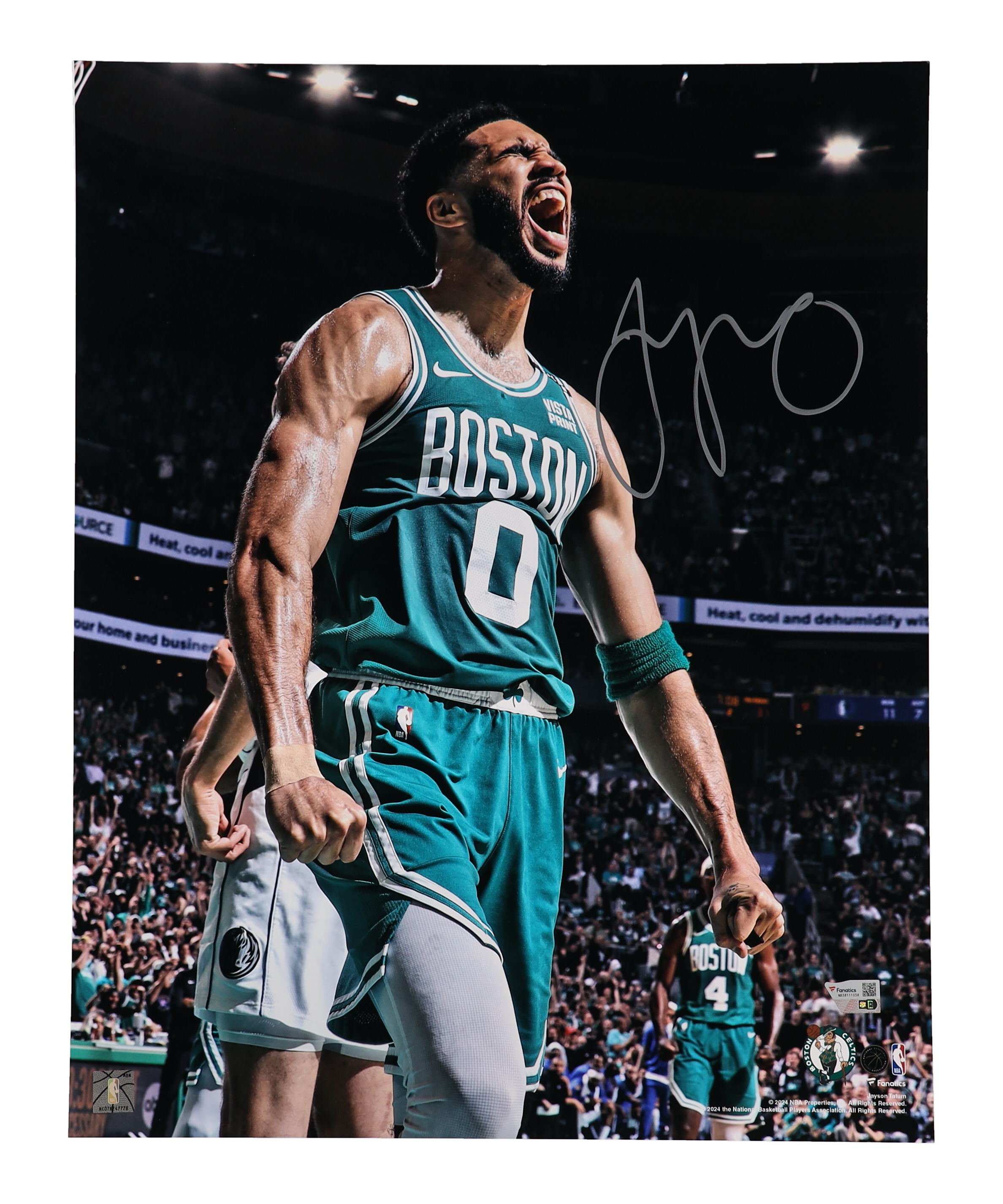 Photo measures 16" x 20" in size and has been hand-signed by Jayson Tatum (Boston Celtics).