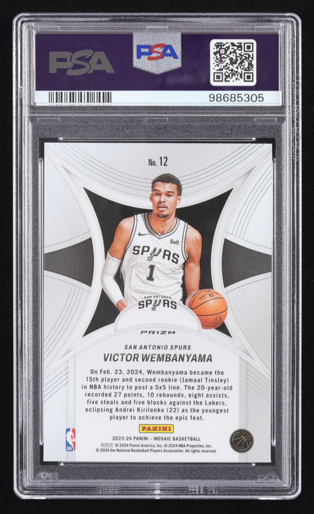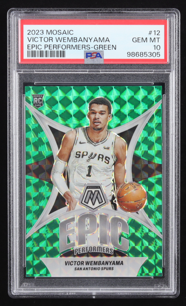 Victor Wembanyama 2023-24 Panini Mosaic Epic Performers Mosaic Green #12 RC (PSA 10)