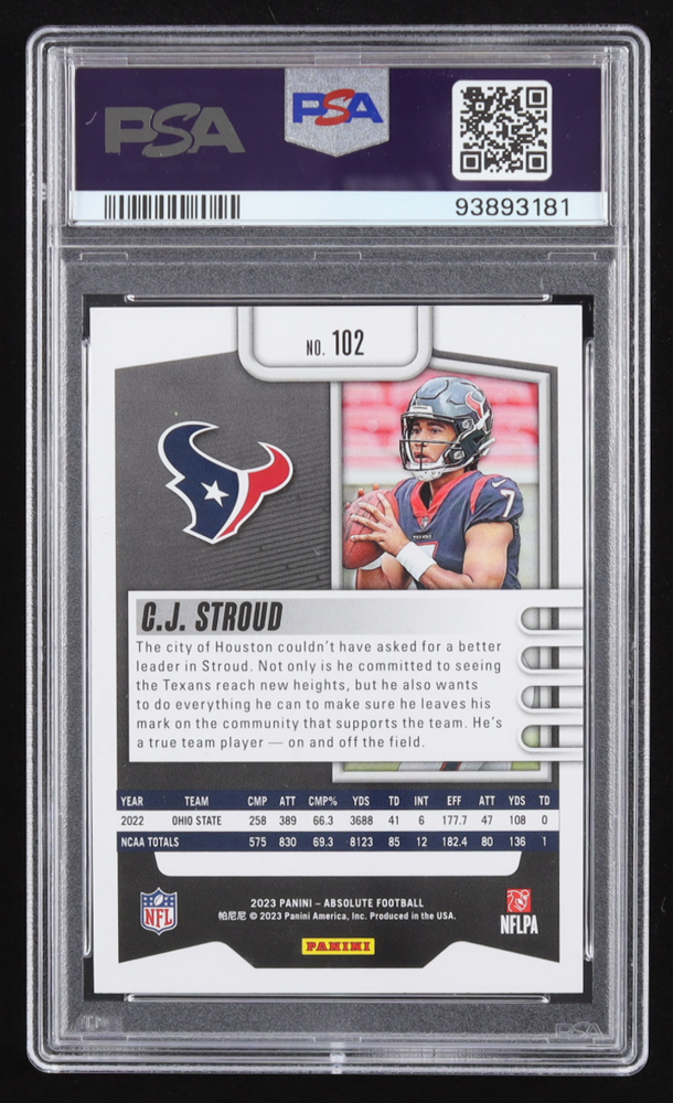 CJ Stroud 2023 Absolute #102 RC (PSA 10)