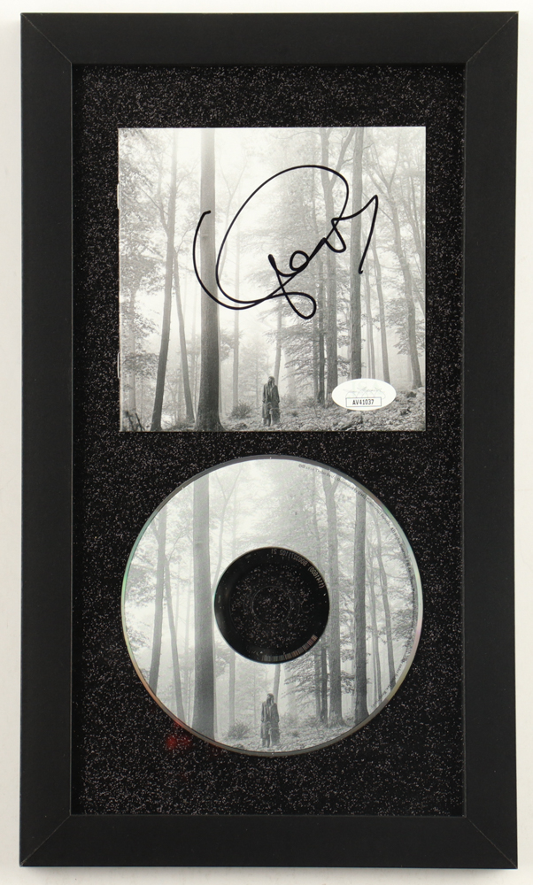Custom frame measures approximately 8" x 13.5" in size. Features a "Folklore" CD album insert that has been hand-signed by Taylor Swift. The CD disc is included as shown.