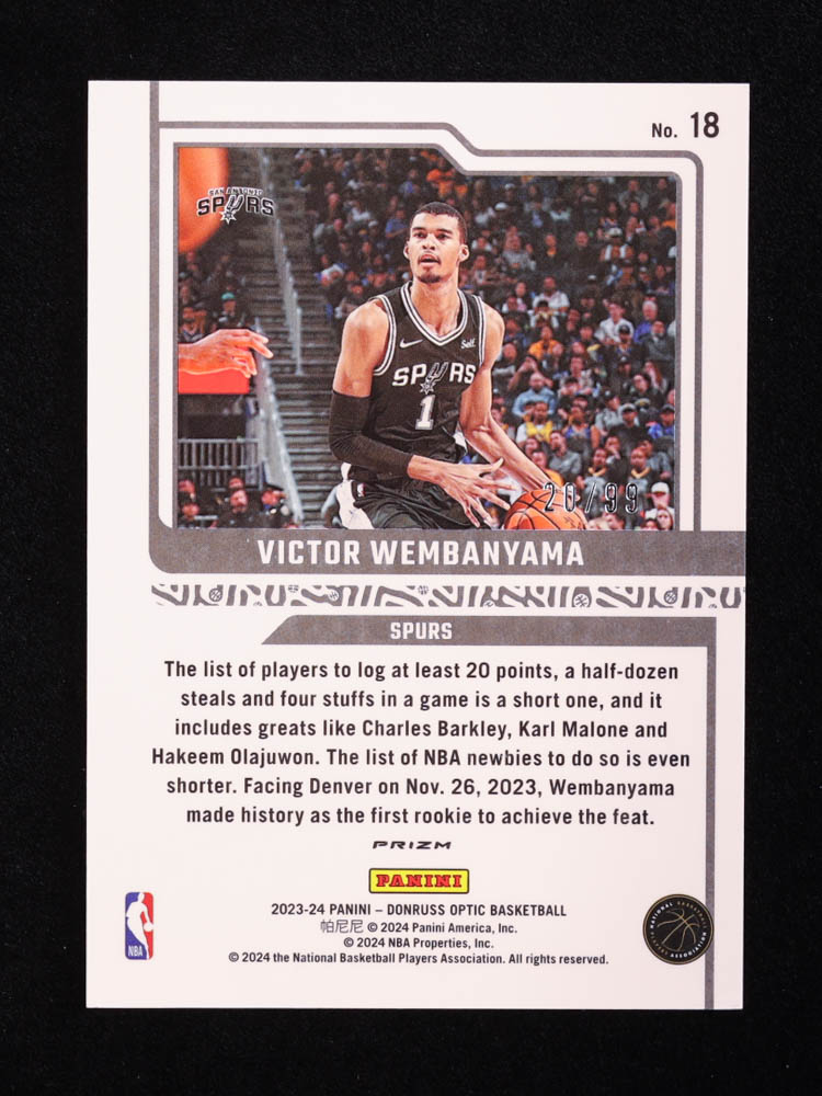 Victor Wembanyama 2023-24 Donruss Optic Elite Dominators Red and Gold International #18 RC #20/99