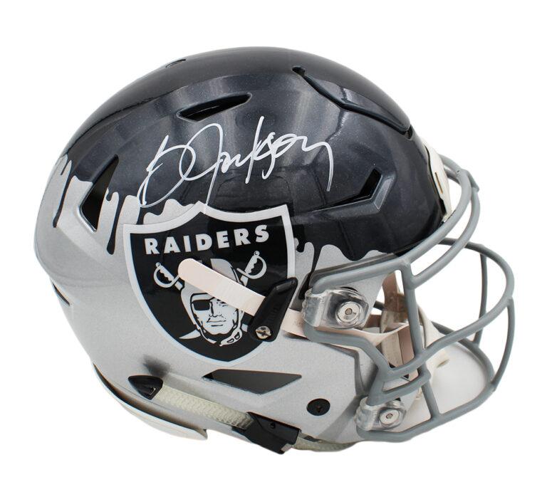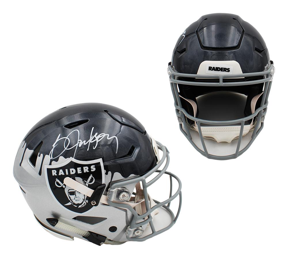 Riddell Los Angeles Raiders full-size authentic on-field custom speedflex helmet has been hand-signed by Bo Jackson.