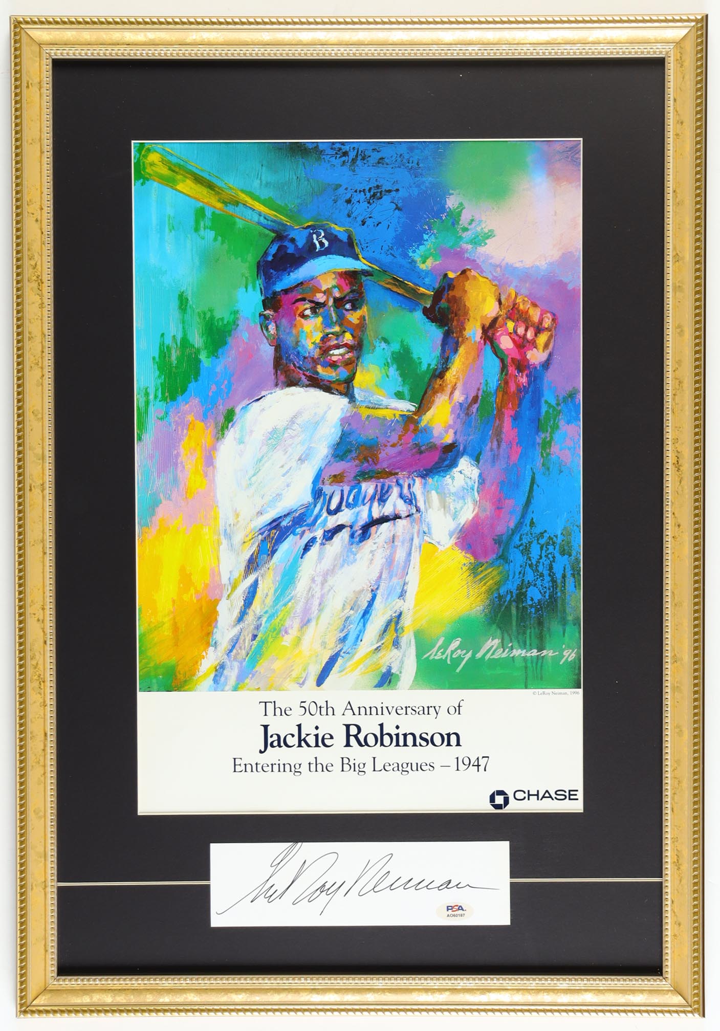 LeRoy Neiman Signed Custom Framed Cut with Jackie Robinson Poster (PSA)