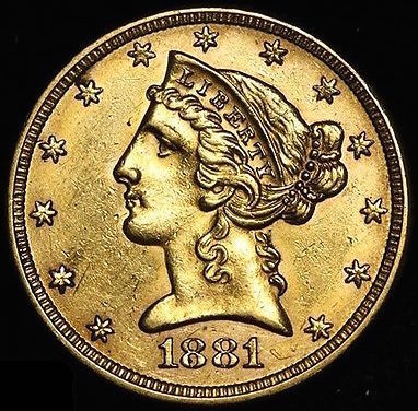 1881 $5 Five Dollars Liberty Head Half Eagle Gold Coin (High Grade Condition)