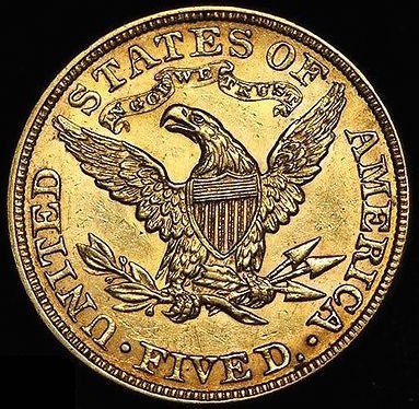 The Half Eagle is a United States coin that was produced for circulation from 1795 to 1929 and in commemorative and bullion coins since the 1980s. Composed almost entirely of gold, it has a face value of five dollars. Its production was authorized by The Act of April 2, 1792, and it was the first gold coin minted by the United States.