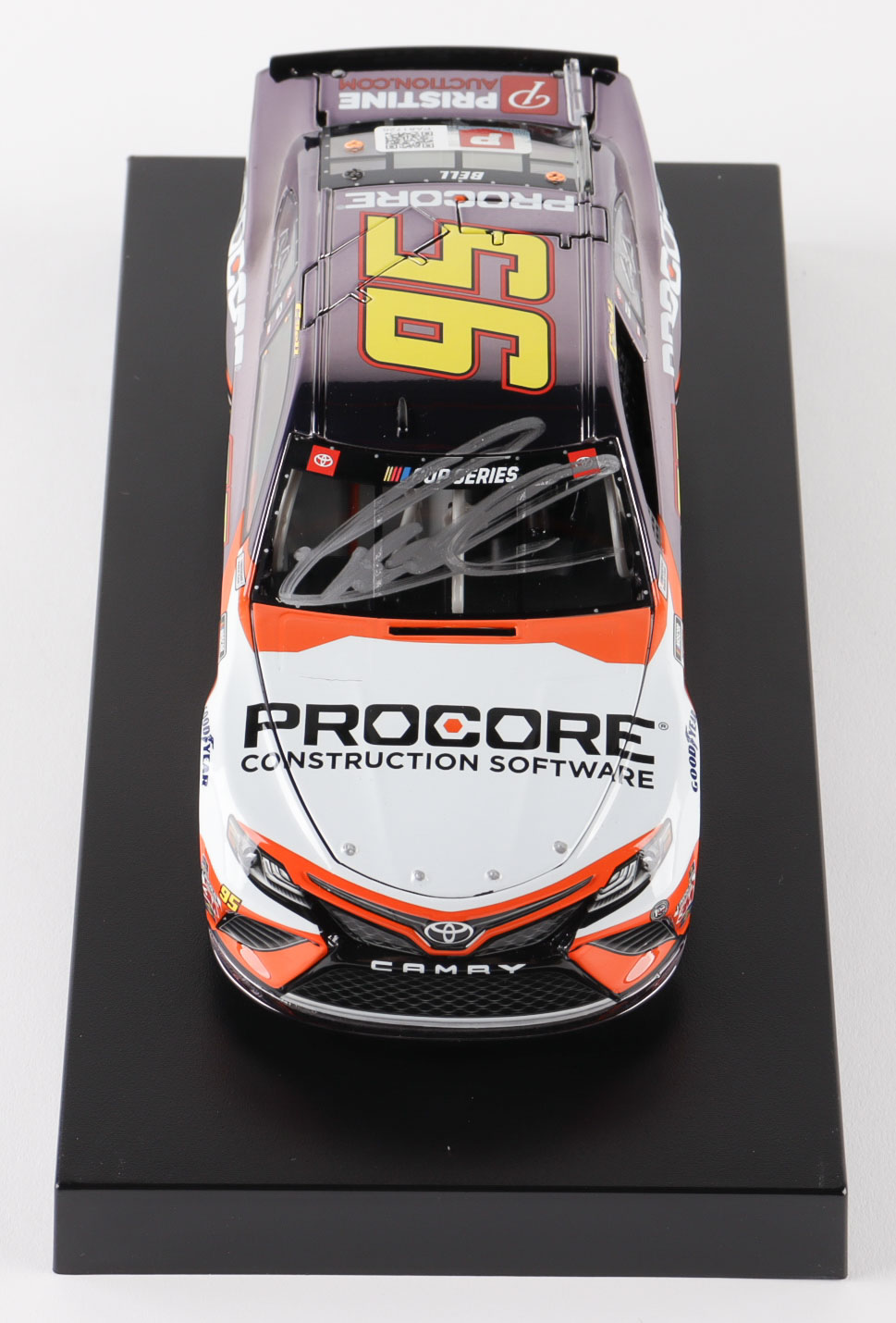 This car features the paint scheme that Christopher Bell ran in Phoenix during his NASCAR Cup rookie year which featured the Pristine Auction logo on the deck lid.