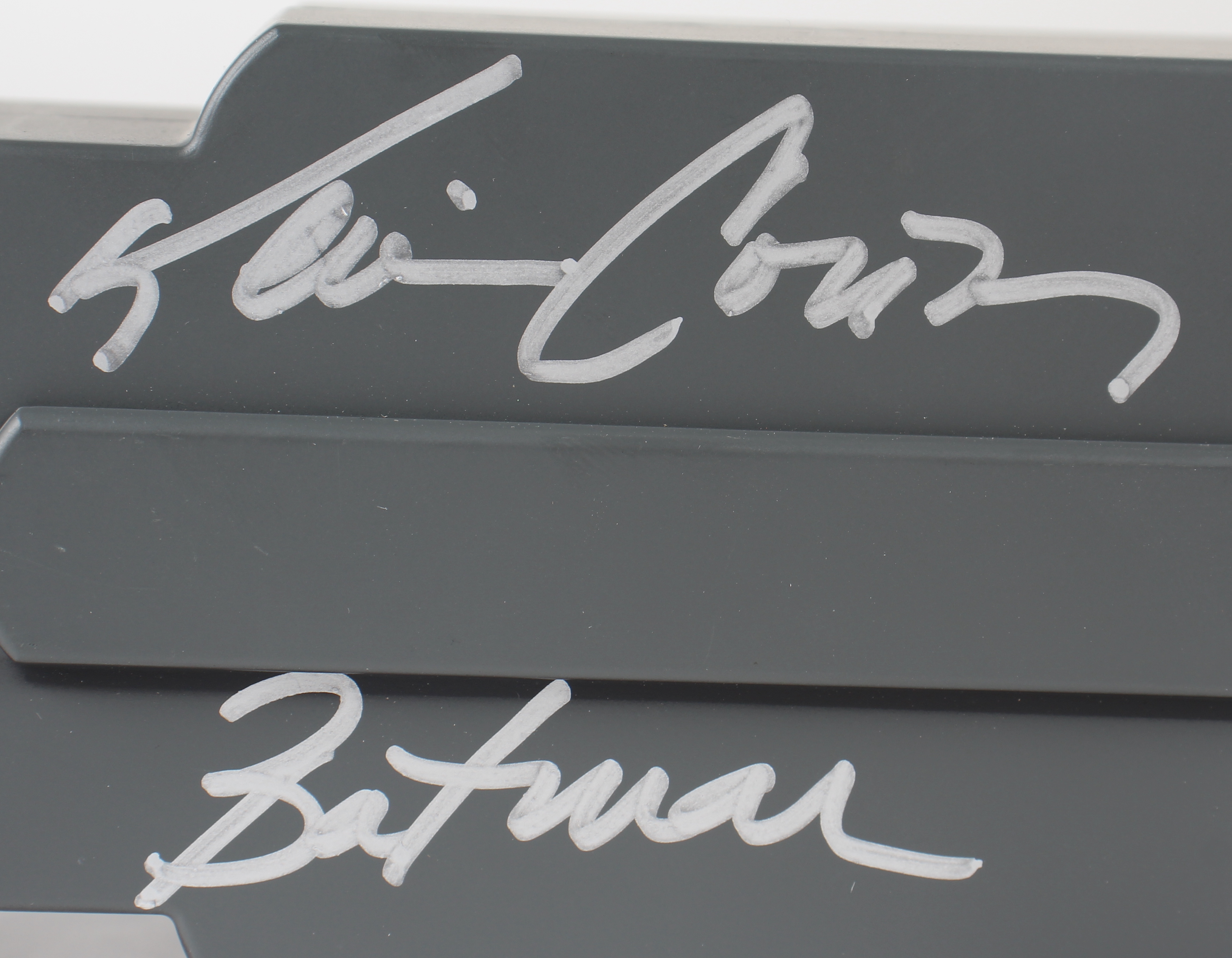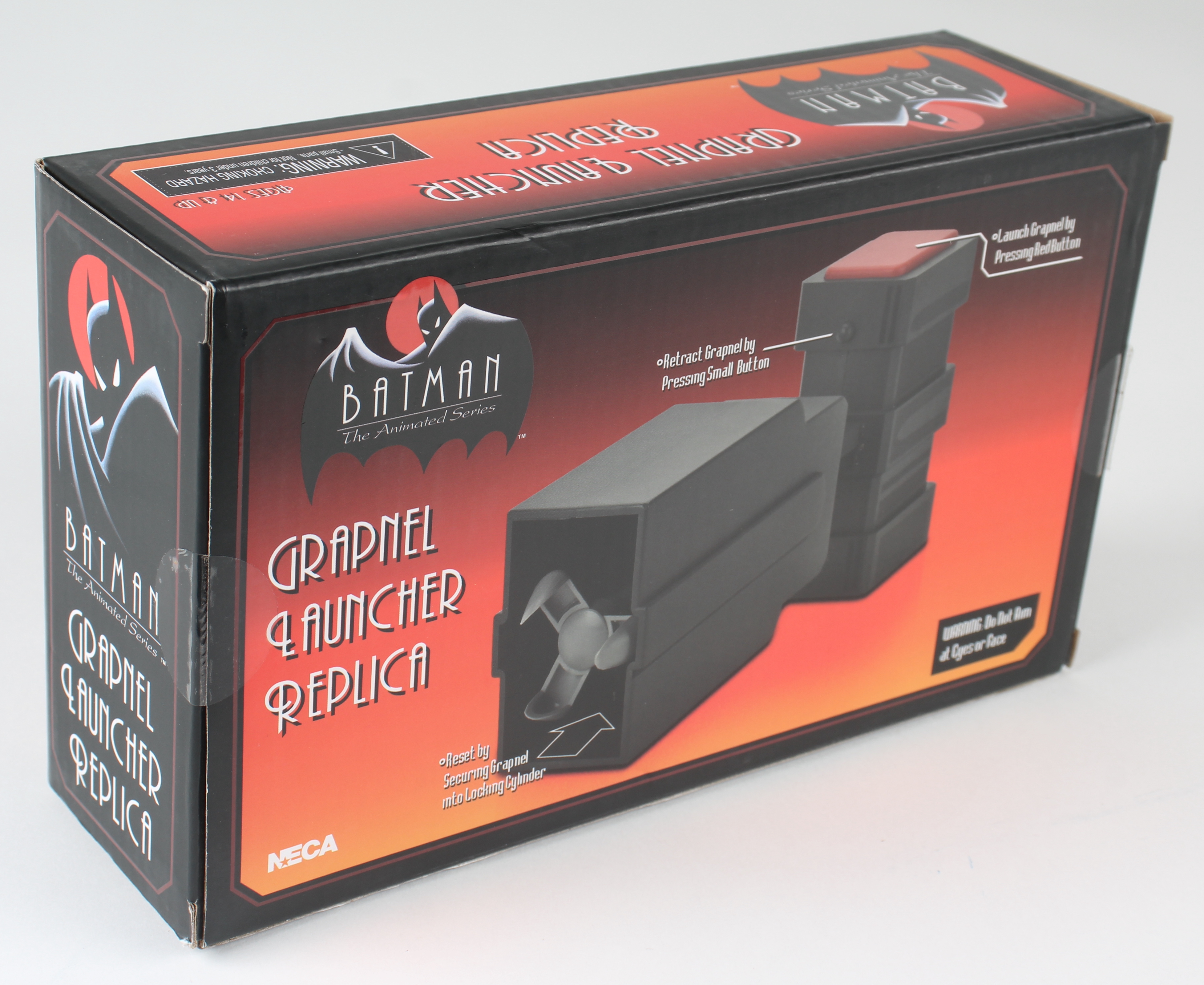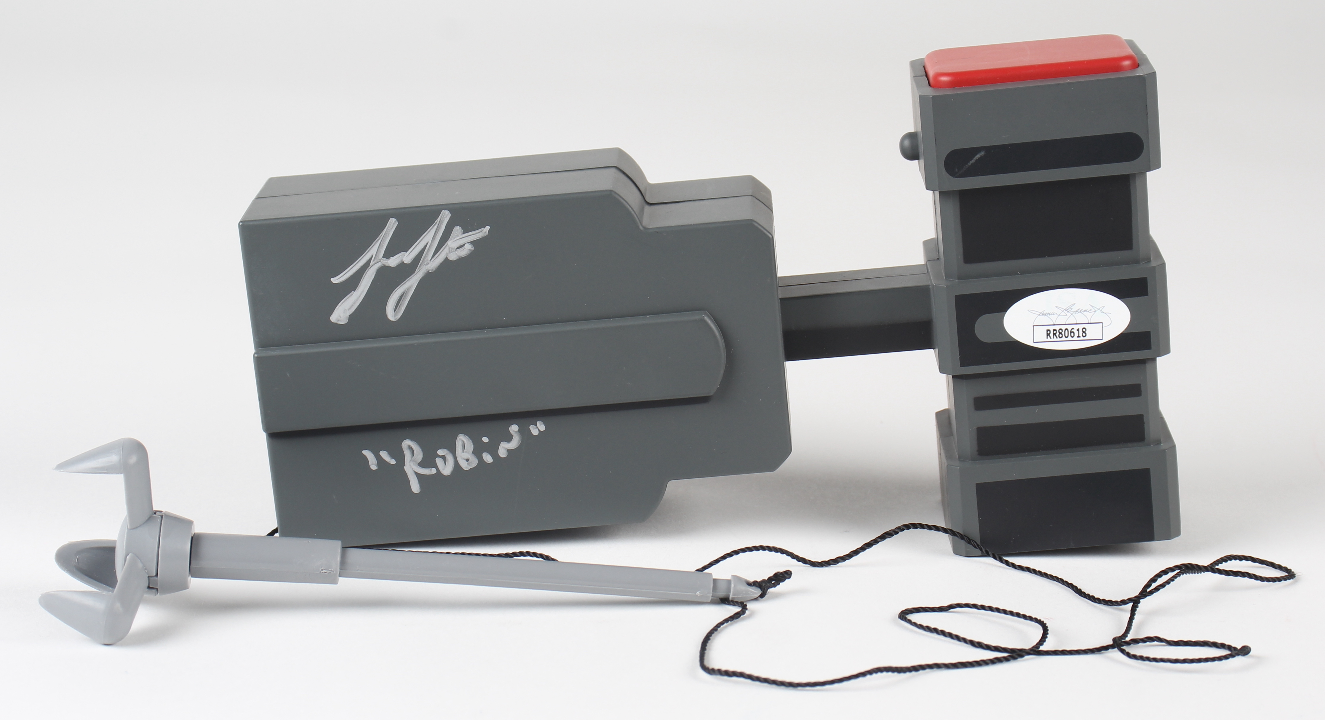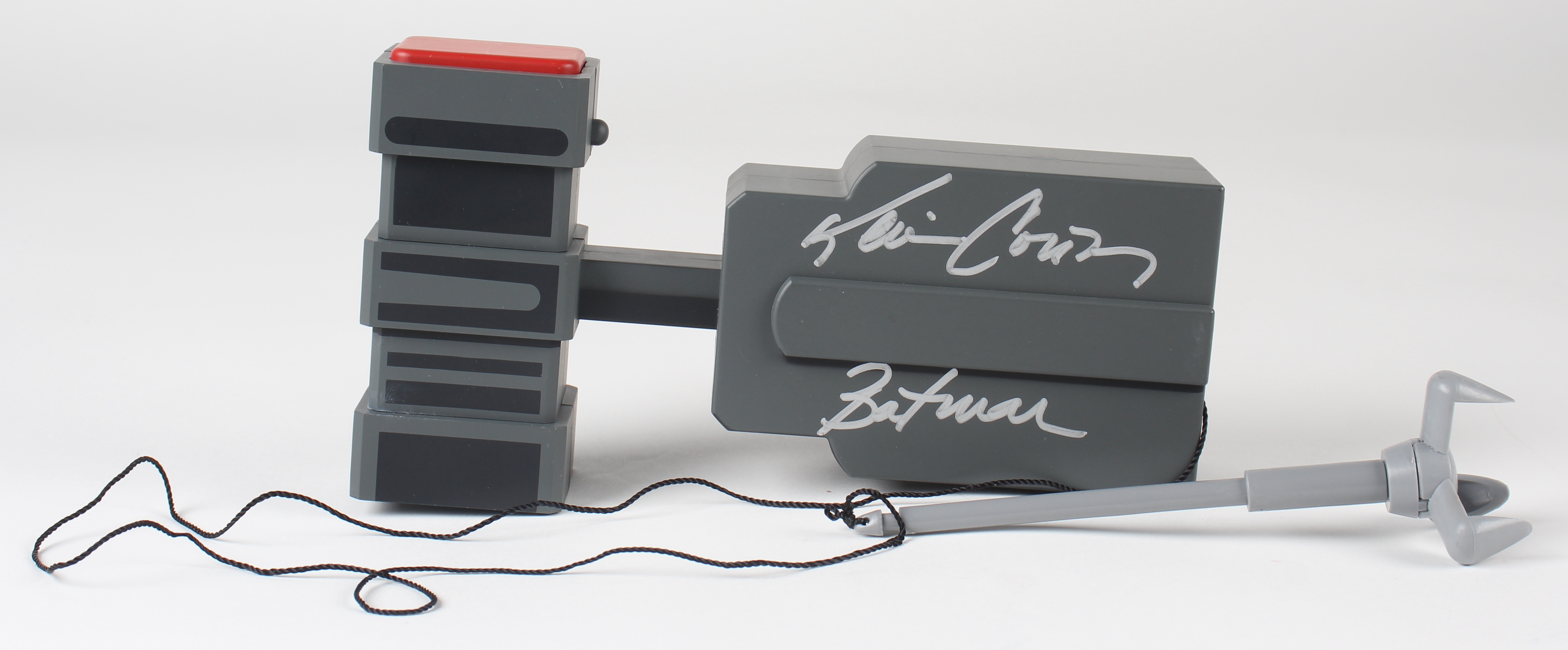 Grapnel launcher replica has been hand-signed and inscribed by Kevin Conroy (Bruce Wayne / Batman) and Loren Lester (Dick Grayson / Robin). Original packaging is included, as shown.