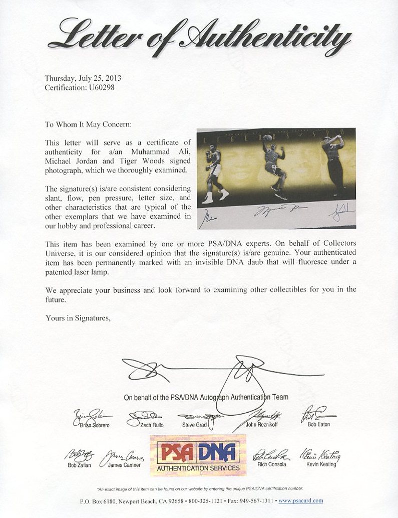 Michael Jordan, Tiger Woods & Muhammad Ali Signed "Legends of Sport" 59x46 Custom Framed Photo