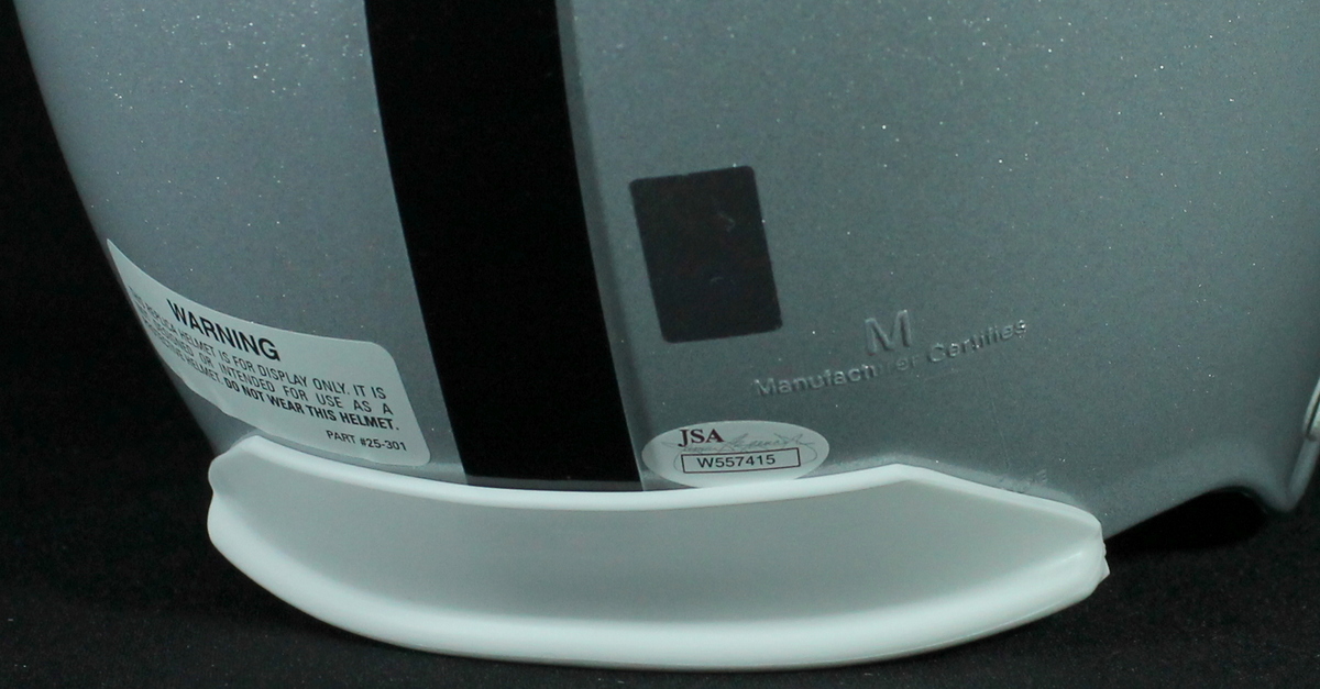 Riddell full-size replica helmet. Hand-signed in black felt-tip pen by Bo Jackson (Raiders). The autographs include an official James Spence Authentication (JSA) hologram for authenticity purposes. Also includes an official GTSM Bo Jackson Player Hologram.