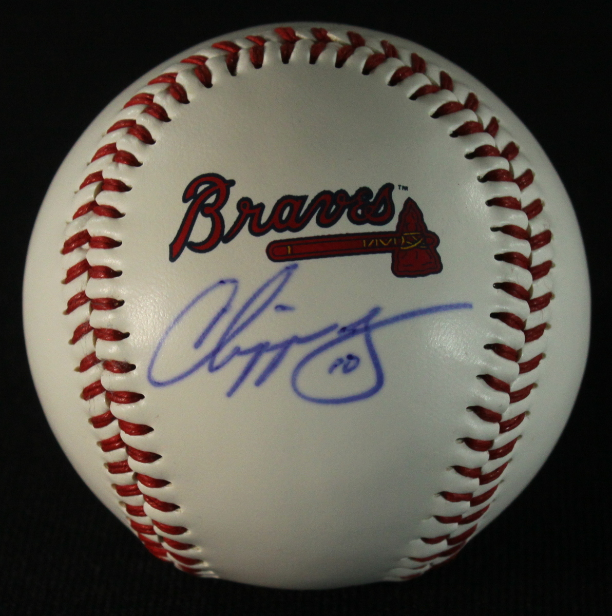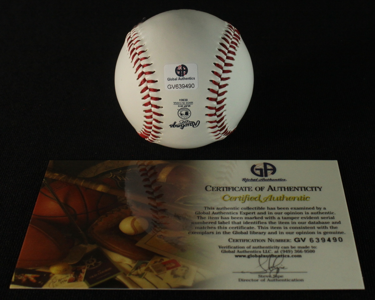 Official Major League Baseball. Hand-signed in blue ink by Chipper Jones (Braves). Autograph includes a Global Authentics hologram and matching COA for authenticity purposes.