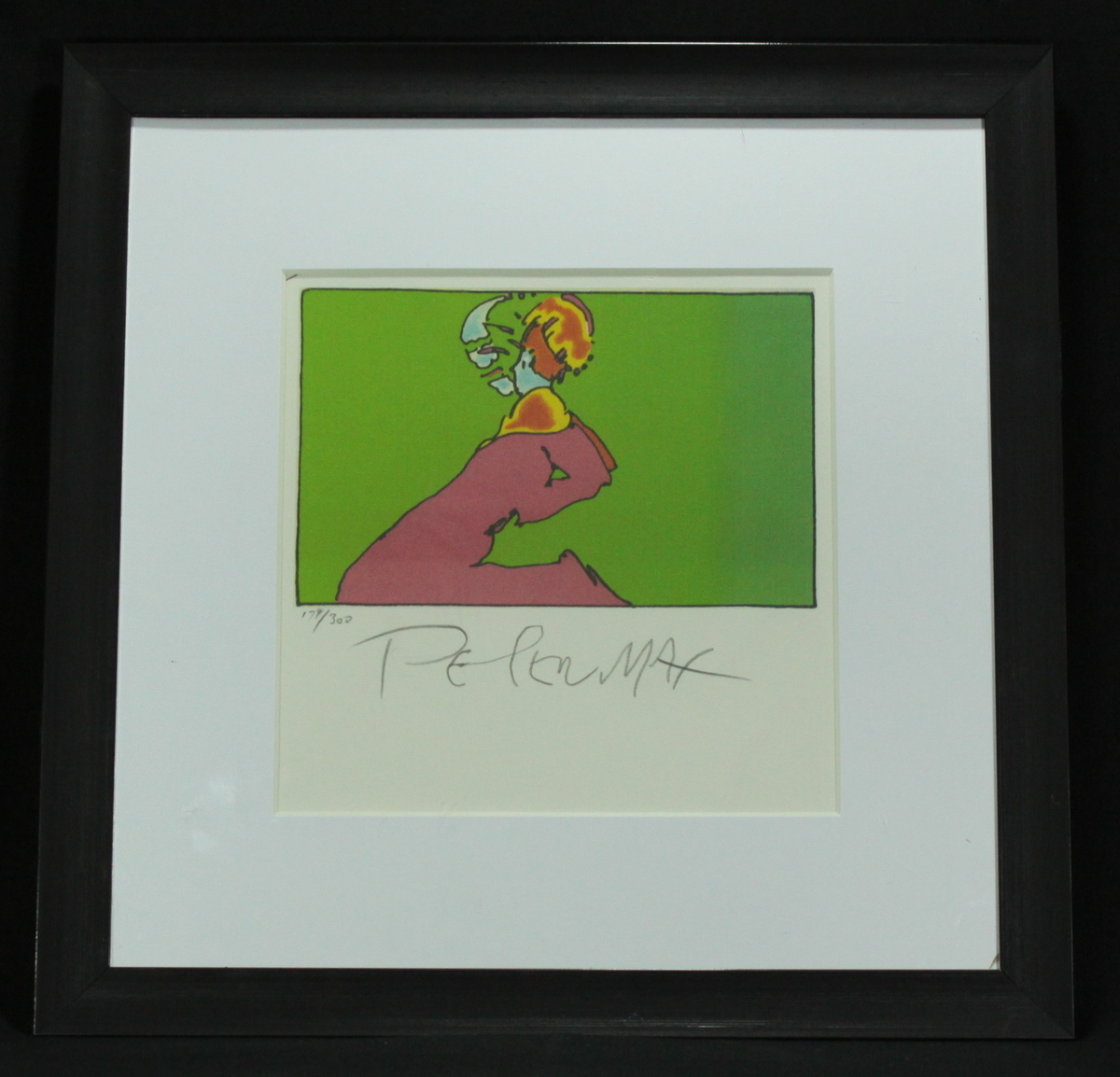 This rare limited edition lithograph measures 11" x 12.75" in size. Custom framed to an overall size of 13.75" x 13.75". Hand-signed and numbered in pencil by Peter Max. Lithograph includes a Pristine Auction LOA for authenticity purposes.